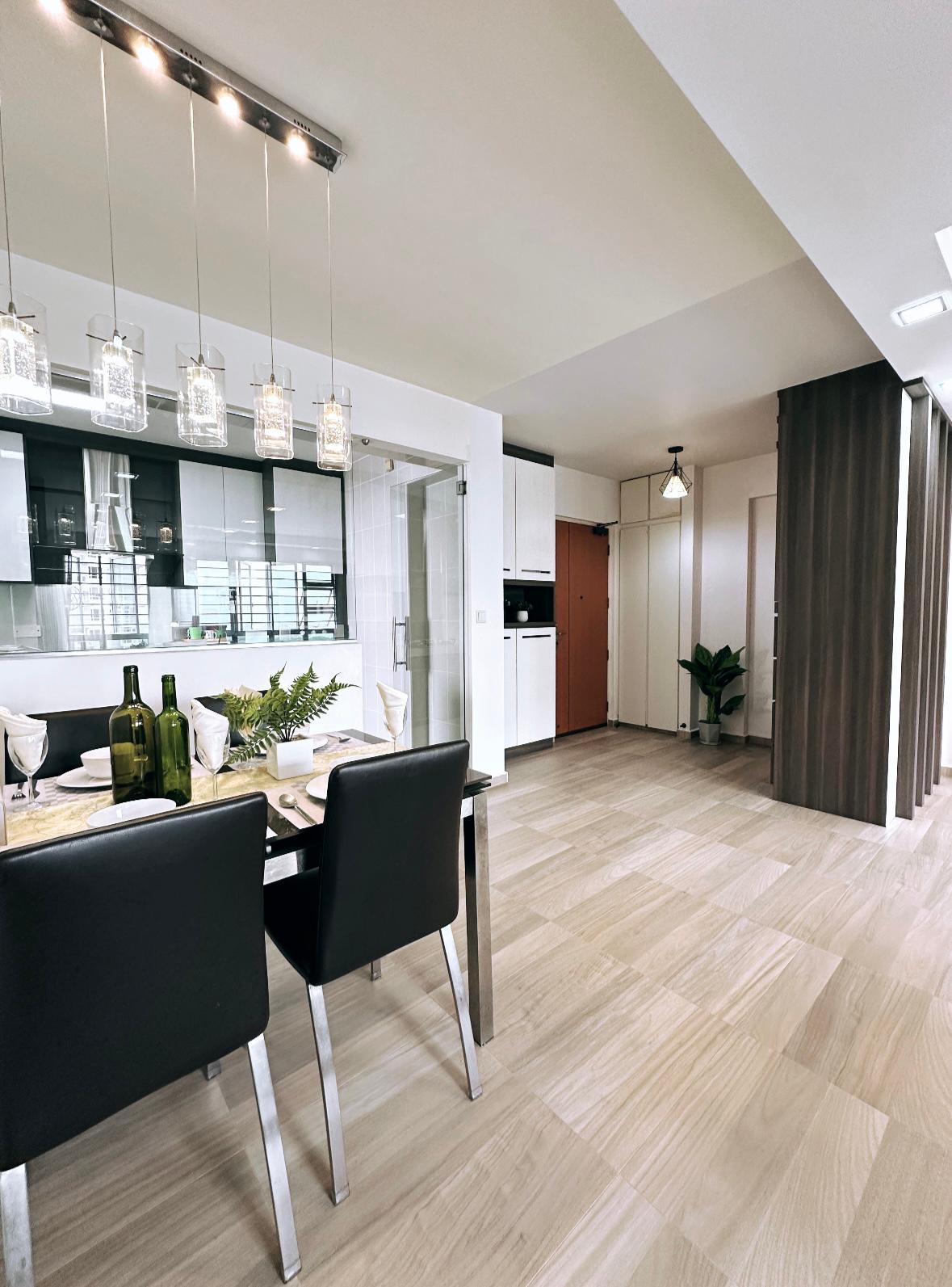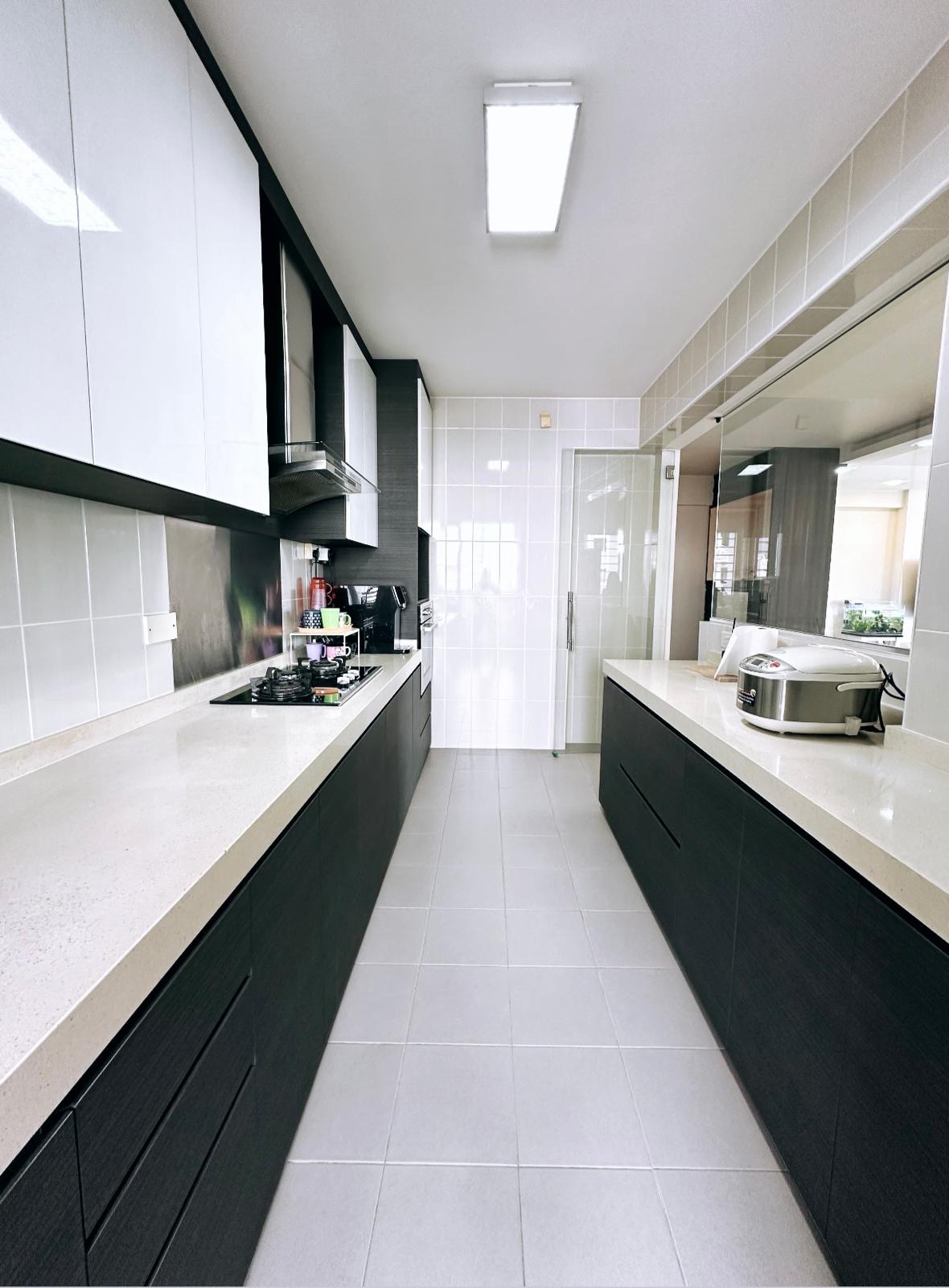 • Kitchen comes with top and bottom cabinets, half hack kitchen wall with see through glass
